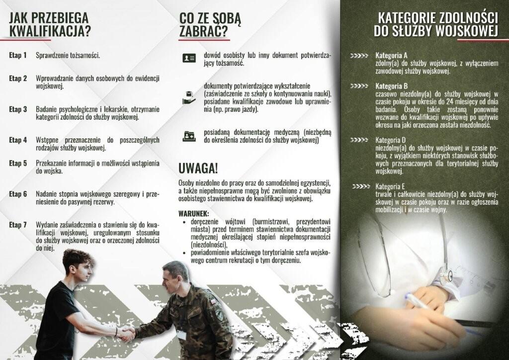Kwalifikacja wojskowa to także doskonały moment, aby dowiedzieć się, jakie możliwości daje dzisiejsze Wojsko Polskie. Każdy, kto odwiedzi powiatową komisję, lekarską może porozmawiać z przedstawicielem Wojskowego Centrum Rekrutacji o Dobrowolnej Zasadniczej Służbie Wojskowej, Terytorialnej Służbie Wojskowej, czy o uczelniach  wojskowych i szkołach podoficerskich oraz spotkać się z żołnierzami z jednostek wojskowych, którzy będą prezentować specyfikę służby wojskowej w swojej macierzystej jednostce wojskowej wraz z indywidualnym wyposażeniem żołnierskim.